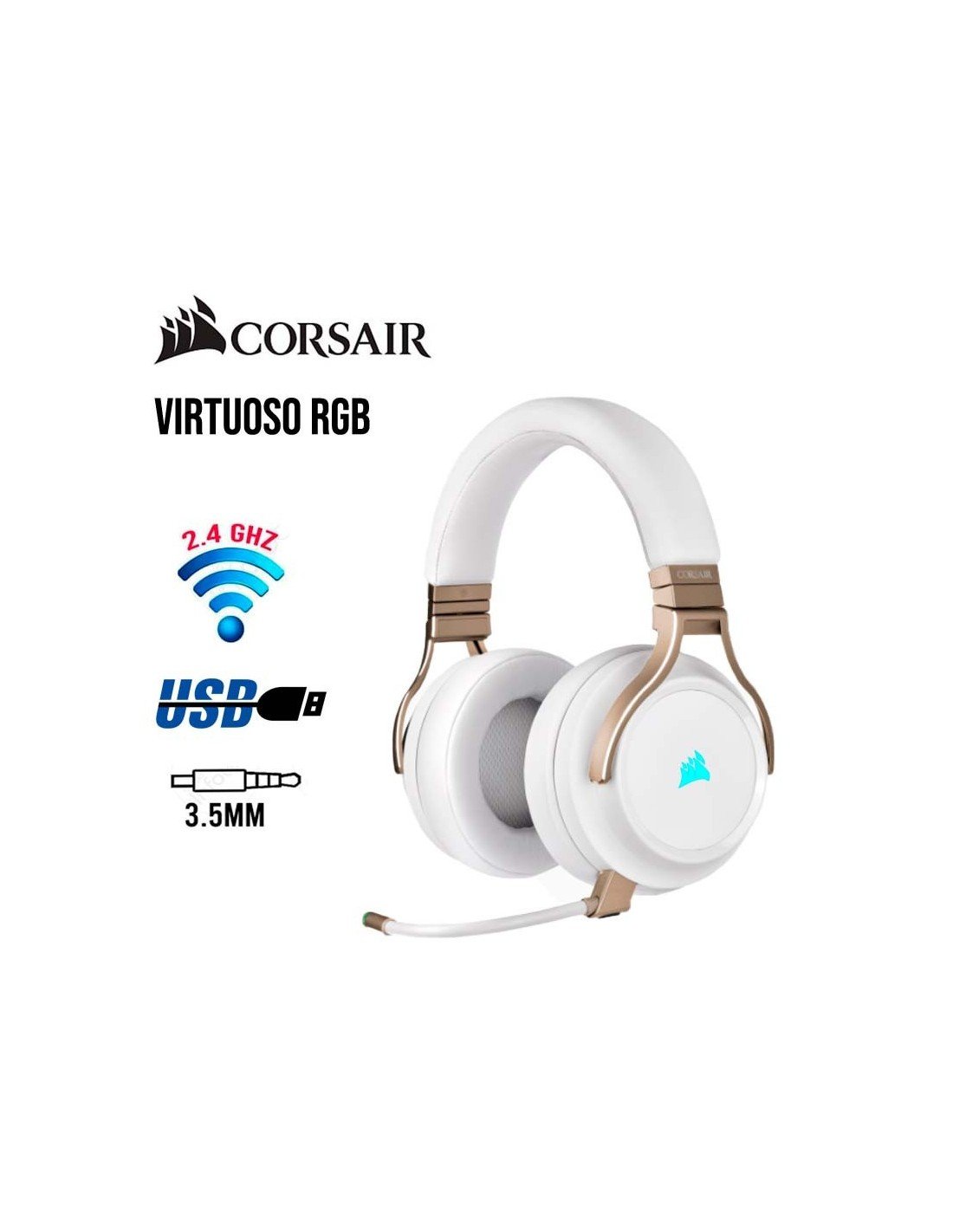 AUDIFONO CORSAIR VIRTUOSO RGB WIRELESS PEARL ( CA-9011224-NA ) GAMING | 7.1 VIRTUAL | PC - PS4