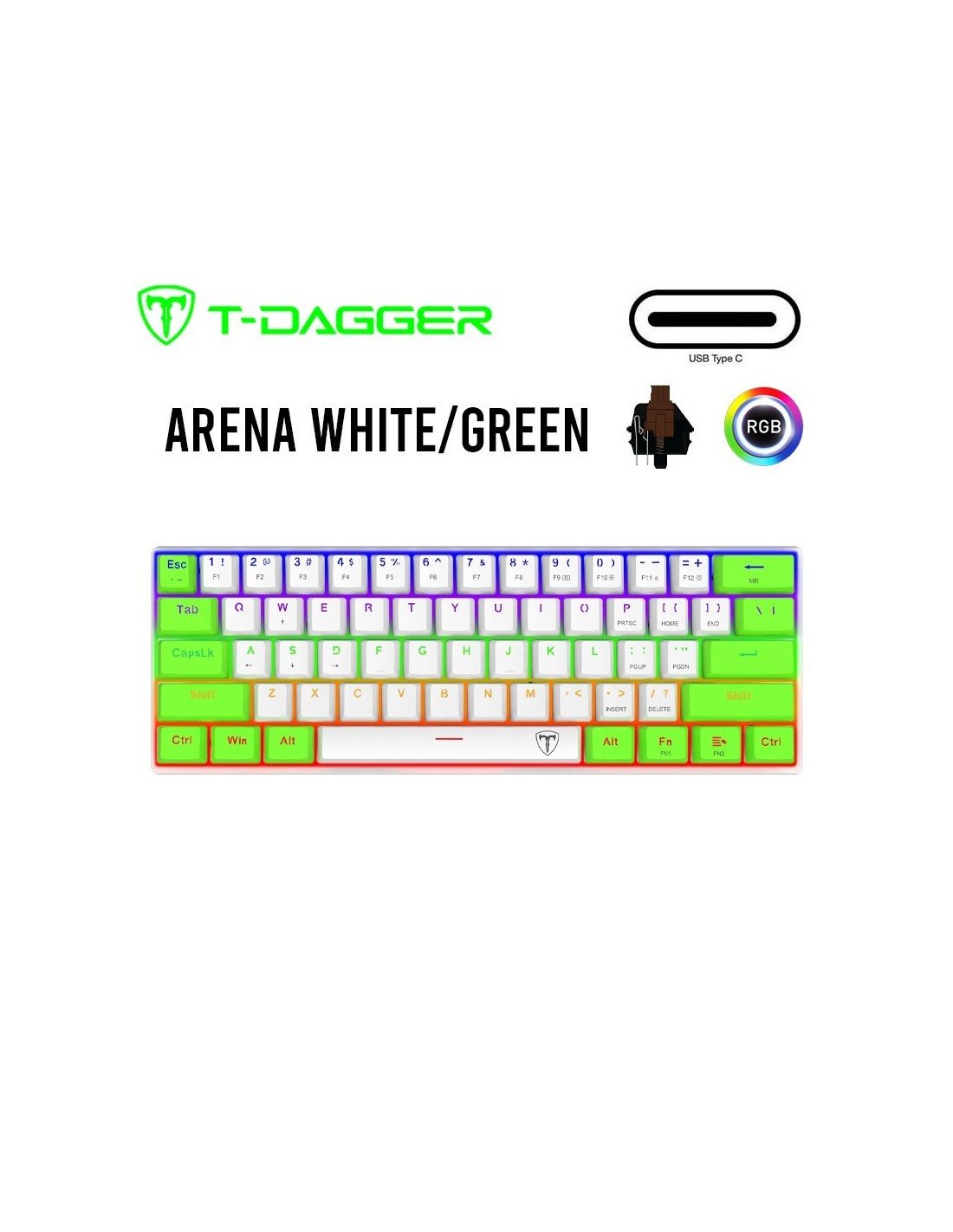 TECLADO T-DAGGER ARENA WHITE/GREEN ( T-TGK321-WG-BR ) GAMING | SWITCH BROWN | RETROILUMINACION RAINBOW